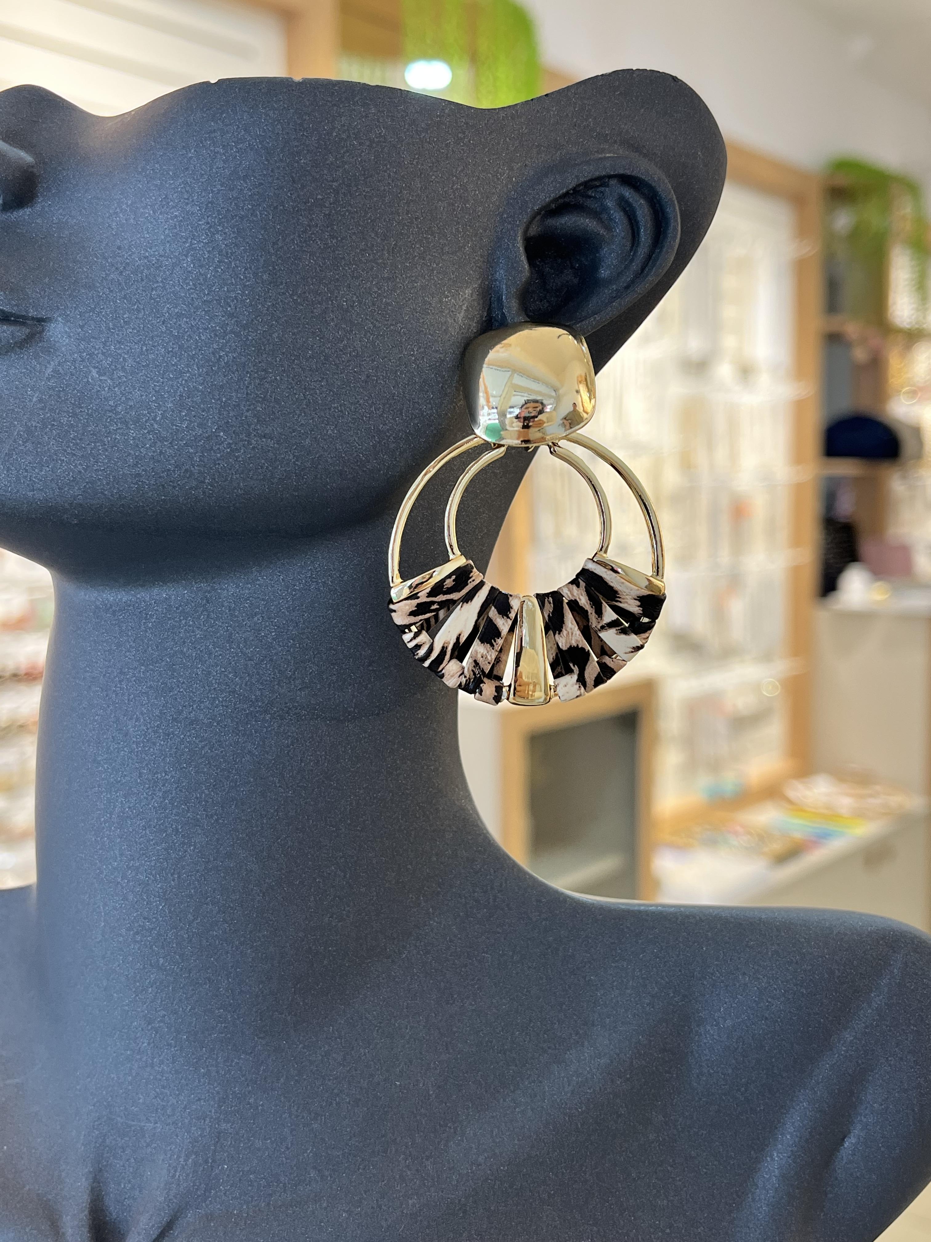 Büyük Halka ve Deri Leopar Detaylı Küpe