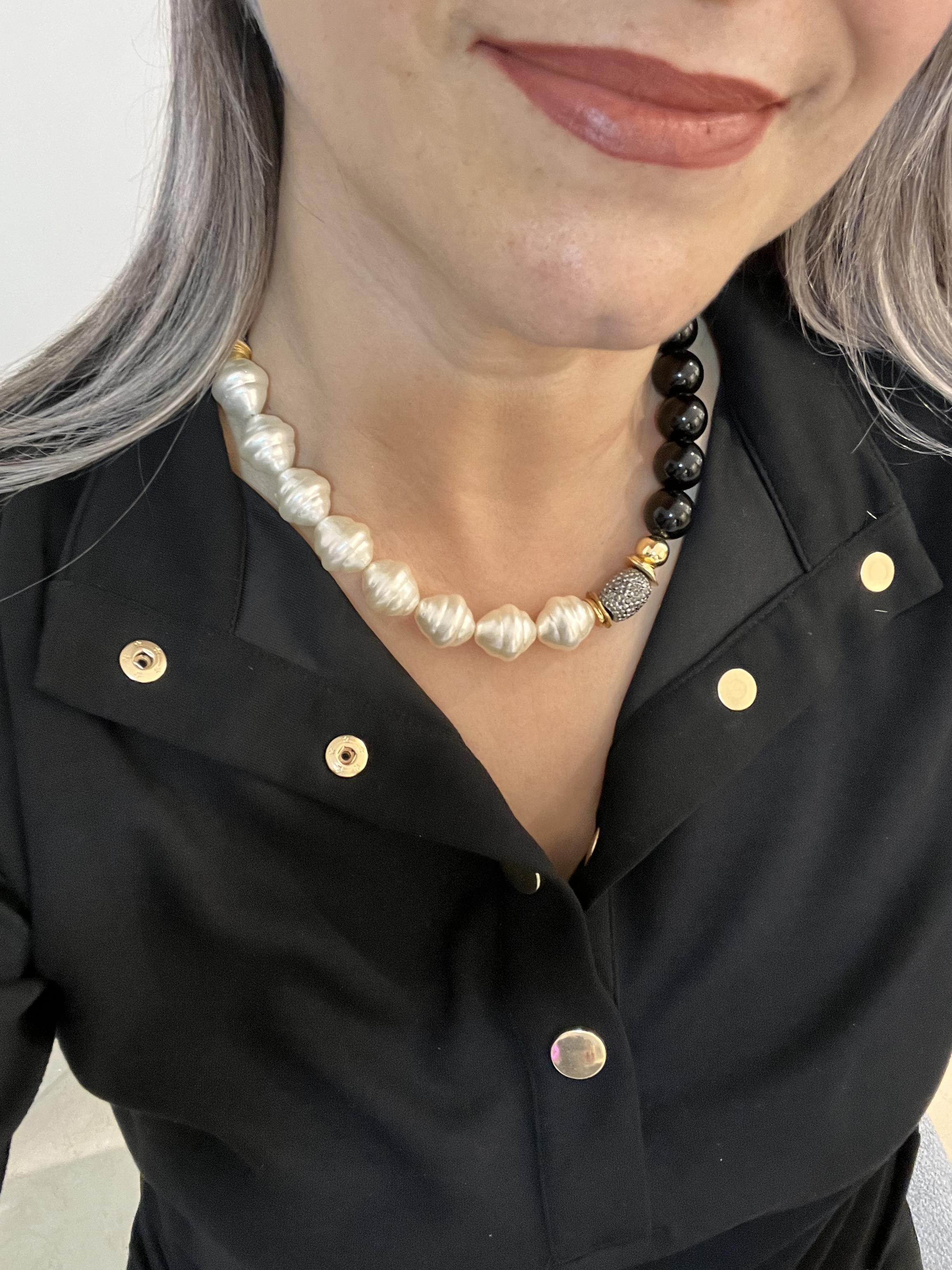 - Renk: Parlak beyaz inci ve derin siyah boncuklar.