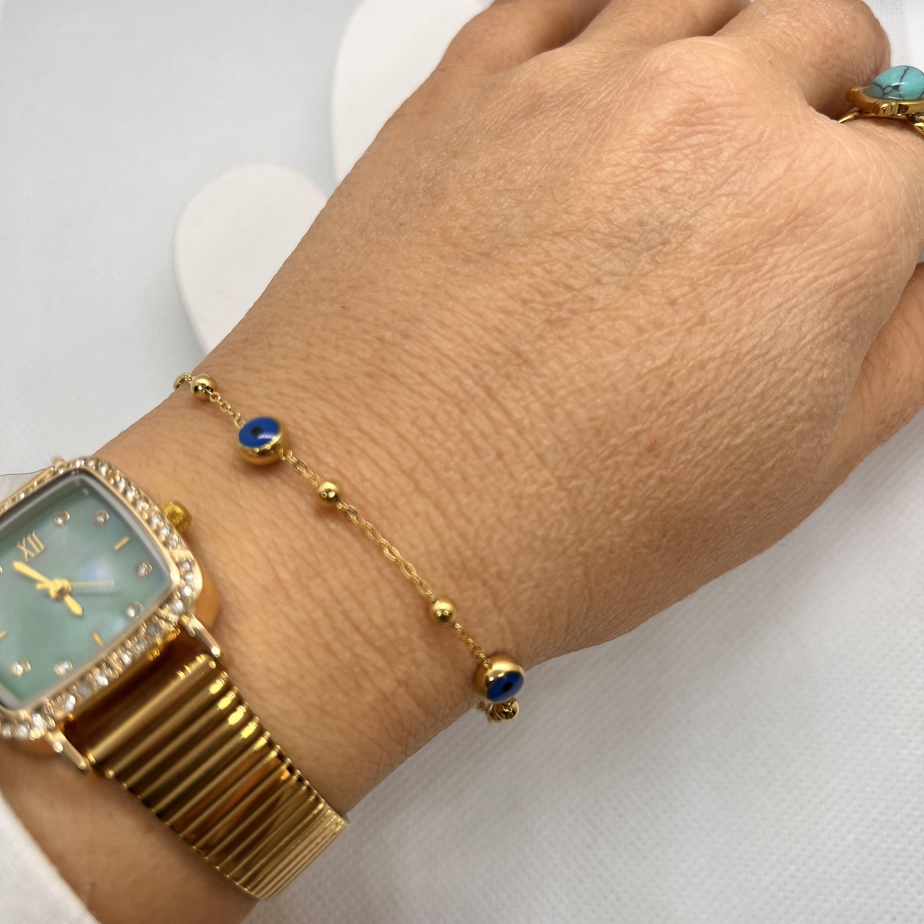 Minimal nazar boncuklu çelik bileklik