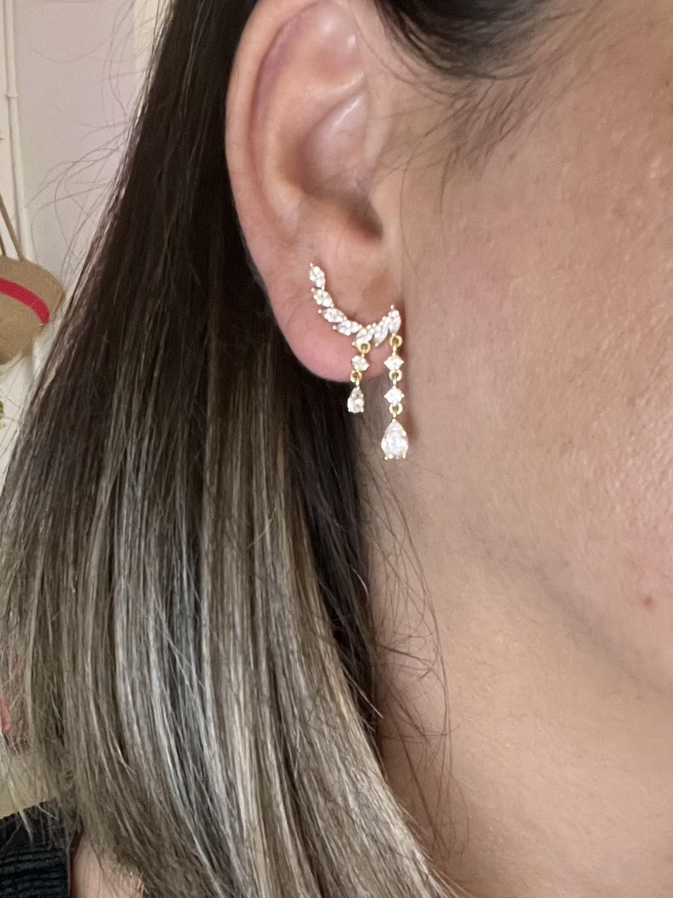 Üstün kaliteli zirkon taşlar ile süslenmiş olan bu küpe, ışık altında parlayan yapısıyla etrafınızdaki herkesin ilgisini çekecek. Özel olarak seçilmiş ve işlem görmüş zirkonlar, doğal yapıları sayesinde hem zarif hem de gösterişli bir görünüm sunar. Mükemmel işçilikle hayata geçirilen tasarım, modern bir estetik anlayışla harmanlanmıştır.